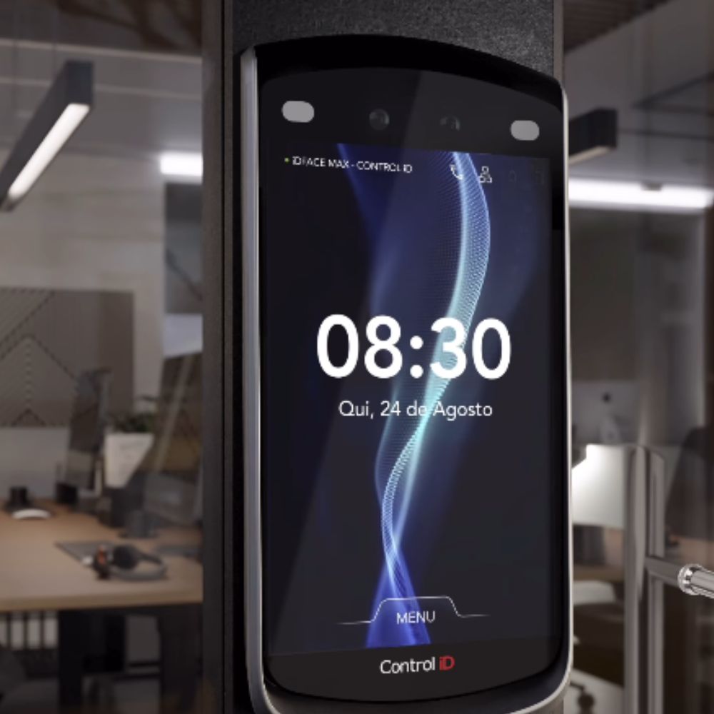 O Control iD iDFace Max é um relógio de ponto facial avançado, ideal para controle de acesso e registro de jornada com reconhecimento facial de alta precisão. Com câmeras HD, detecção de rosto vivo e autenticação com ou sem máscara, identifica até 100.000 rostos (1:N). Seu display touchscreen de 7”, software web integrado e conectividade completa (Ethernet, Wi-Fi, PoE) garantem segurança, praticidade e conformidade com a Portaria MTP 671/2021.