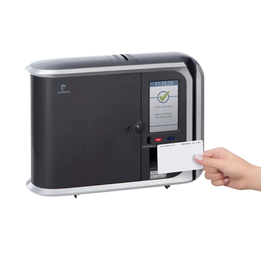 Seu sistema avançado permite a marcação de ponto por biometria, cartão de proximidade, código de barras ou senha, garantindo flexibilidade total na identificação dos colaboradores.