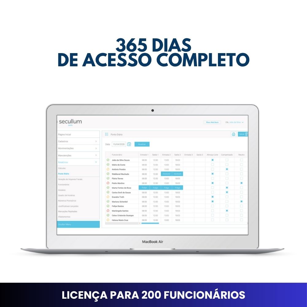 Licença Anual do Sistema Secullum Ponto Offline – Controle de Ponto para até 200 Funcionários.