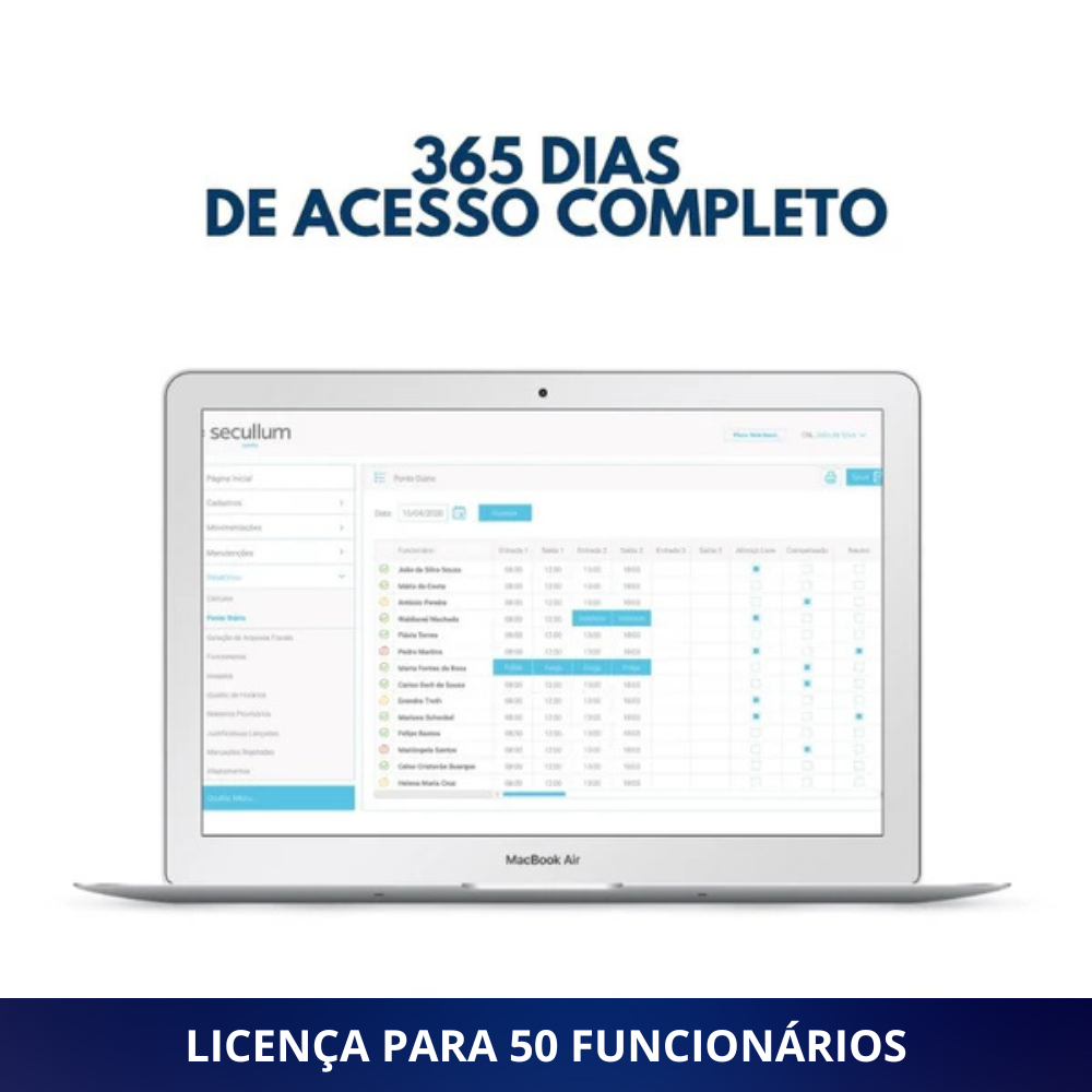 Licença Anual do Sistema Secullum Ponto Offline – Controle de Ponto para até 50 Funcionários.